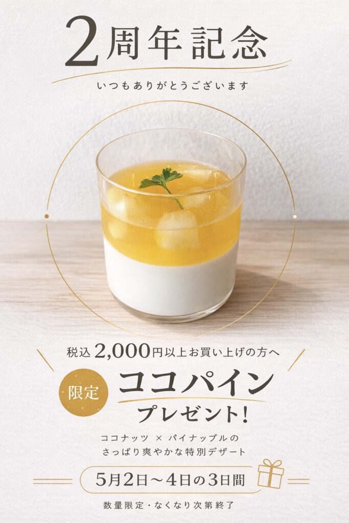 2周年の節目に、ぜひお立ち寄りください。皆さまのご来店を心よりお待ちしております。
